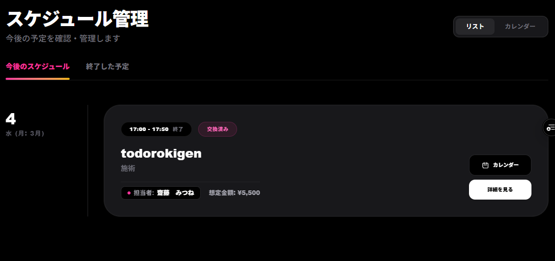ここではお客さんの過去の施術内容と今後の来店予定が表示されます。つまり各お客さんの過去と未来が1箇所で一目瞭然なのです。