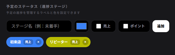 進捗管理も業種業態に合わせてカスタマイズできるのもNIGIRI-CRMの特徴の1つです。初めてのお客さんかリピーターかを設定しておけばすぐに確認できます。